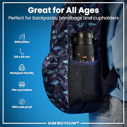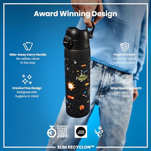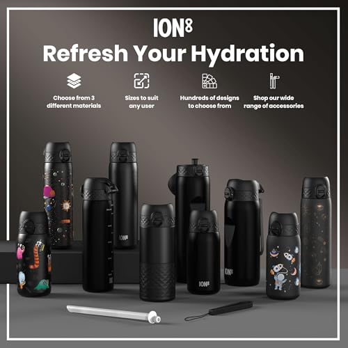 Ion8 - ايون8 زجاجة مياه رفيعة مانعة للتسرب، خالية من البيسفينول ايه، سفن فضاء، 500 مل (18 اونصة)