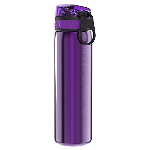 Ion8 - ايون8 زجاجة مياه رفيعة مانعة للتسرب من الستانلس ستيل، 600 مل (20 اونصة)، ارجواني