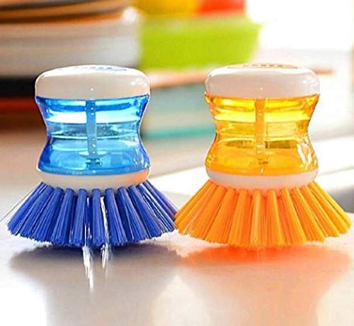 IONIX - IONIX Cleaning Brush, Kitchen Accessories Items, Dish/Washbasin Plastic Cleaning Brush with Liquid Soap Dispenser/Dish Cleaning Brush/Sink Brush for Kitchen (2 Pieces Sink Brushes)
