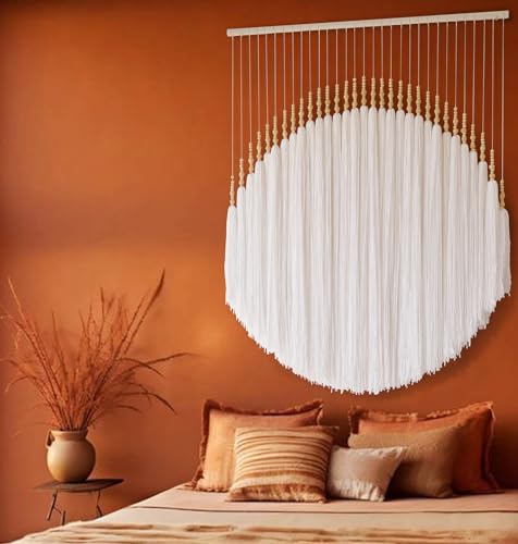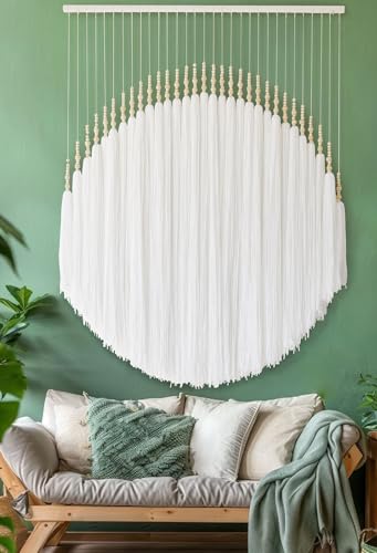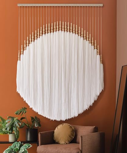 - BEAUTIFULLY HANDCRAFTED: The Macrame Wall Hanging Mounted White Tassel Line Wall Decor with Wooden Beads is carefully handcrafted to ensure superior quality and exquisite detail. Each wooden bead is carefully selected and intricately woven with white fringed thread, creating an original and charming handmade feel.