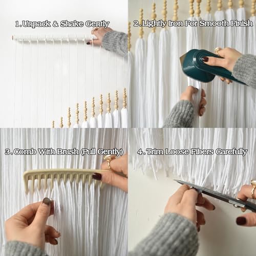 - Multifunctional Decoration: The white tassel line wall decoration with wooden beads is perfect for decorating different spaces such as living room, bedroom, study room, corridor, office, etc. It can be used as wall art, curtain ornaments, or even bedside decorations to add depth and unique decorative style to your space.