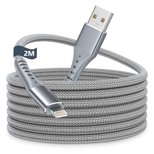 Aioneus - كيبل شاحن ايفون بطول 2 متر اييونوس لايتنينج معتمد من ابل، كيبل ايفون طويل 2.4 امبير للشحن السريع متوافق مع ايفون 15 14 13 12 11 برو ماكس ميني XS XR X 8 7 بلس 6s