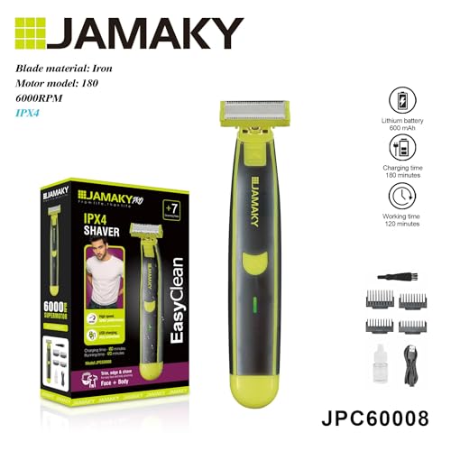 Generic - IPX4 Face & Body Shaver, 180 Mins Charge, 6000 RPM, Waterproof, Black & Green, JPC60008