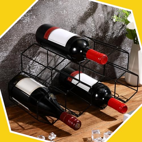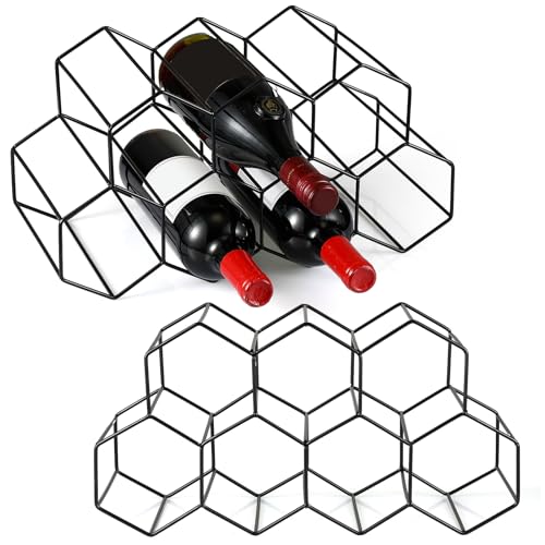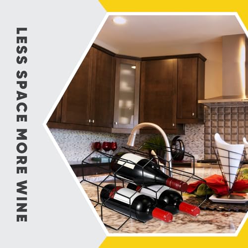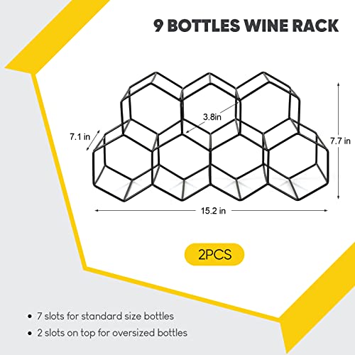 Irenare - 2 قطعة رف النبيذ على سطح الطاولة 9 زجاجات حامل زجاجة النبيذ من ايرينير، رف معدني صغير لتخزين النبيذ، منظم النبيذ، رفوف النبيذ لسطح الطاولة، للمنزل والثلاجة والمطبخ والبار (أسود)