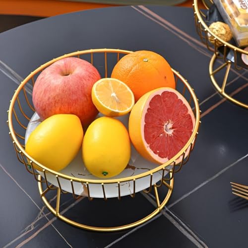 Generic - Iron Basket - Artistic Storage Tray for Fruits, Marble Serving Dish, Luxury Metal Fruit Bowl, Golden Wire Decorative Holder for Kitchen and Living Room (27 سم)