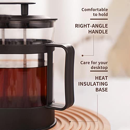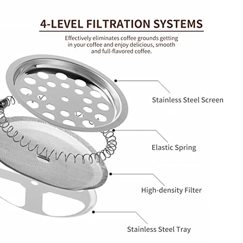 - 💜 🥑Great Filtration. The French press coffee maker owns a sophisticated 4-level filtration system, effectively eliminating coffee grounds getting in your coffee and offering delicious, smooth and full-flavored coffee.