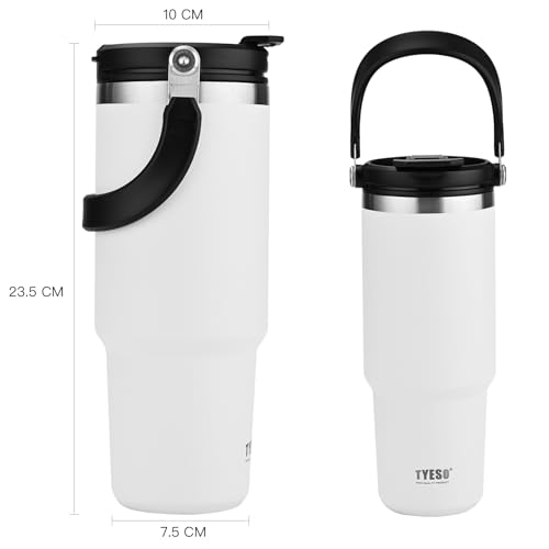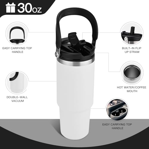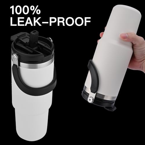 - Leak-proof Lid & Easy Carrying Handle - The insulated stainless steel tumbler is designed with a flip-top, screw-on closure lid to prevent unwanted spills, a ergonomic, rotating handle lets you quickly grab this tumbler with straw and go.