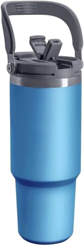 ISFORU - 900ML Tumbler with Top Handle and Straw Lid, Insulated Stainless Steel Travel Tumbler Fit in Cupholder, Leakproof Double Walled Vacuum Water Bottle for Office, Home, Sport or Car (Blue)