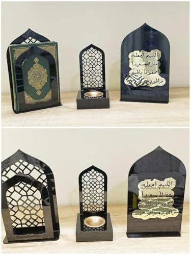 - COMPLETE 3-PIECE ISLAMIC SET: Includes an acrylic incense burner, Quran holder stand, and dua display stand, providing a beautifully coordinated spiritual décor set for your home or prayer space.