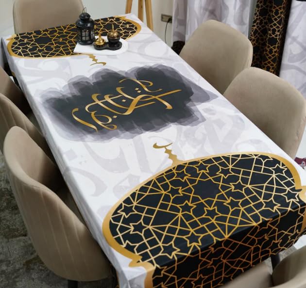 Generic - Islamic Calligraphy Tablecloth, Black and Gold Geometric Pattern, Velvety Soft Fabric, Multiple Sizes Available, Eid Dining Decor (140 * 200)