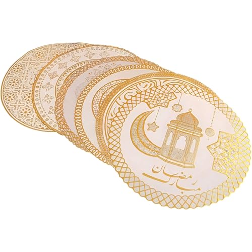 Generic - مجموعة قواعد اكواب اسلامية مكونة من 6 قطع بتصميمات منقوشة بالذهب مع فن الخط "Blessed Are You This Month" لديكور طاولة رمضان الانيق، قواعد اربيسك مقاومة للحرارة مثالية للتجمعات والهدايا