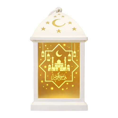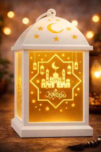 Generic - Islamic LED Ramadan Lantern – Hanging or Table Decoration Light for Home Ramadan Eid Decor | LED Ramadan Lantern with Islamic Design – Decorative Hanging & Tabletop Light for Home.(White)