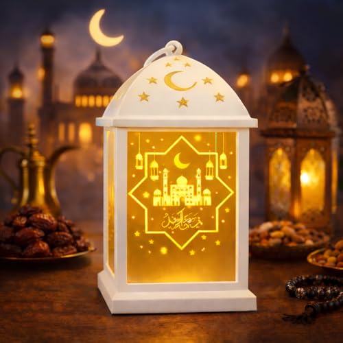 - Ramadan lantern design with crescent stars and Islamic decorations add a warm ramadan ambience to your home. Warm and energy-saving LED light provides soft and comfortable eye lighting, perfect for Ramadan nights and family evenings. Suitable for hanging or table easy to hang or place on table, shelf or entryway as you like. Perfect ramadan and christmas decor adds a stylish spiritual touch to home, seats, shops, or as a special gift. Durable material and high-quality finish made of strong materials with stable base for safe indoor use