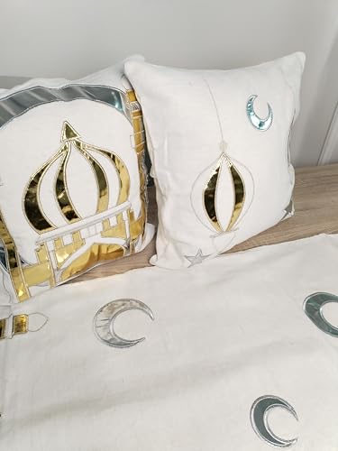 - Embroidered Pillow Covers: Two Pillow Covers Same Islamic Design with Gold and Silver Embroidery for Complete Decor Coordination