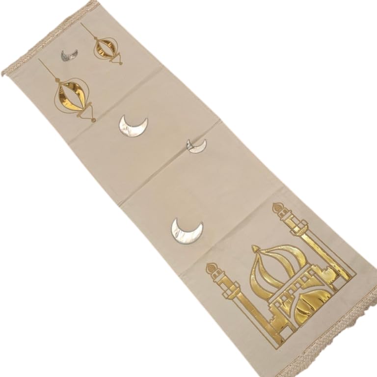 Generic - Islamic Ramadan Decor Set, Beige with Gold and Silver Crescent Mosque Motifs, Ramadan Decor 3 Pieces Runner and 2 Cushion Cover