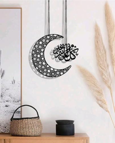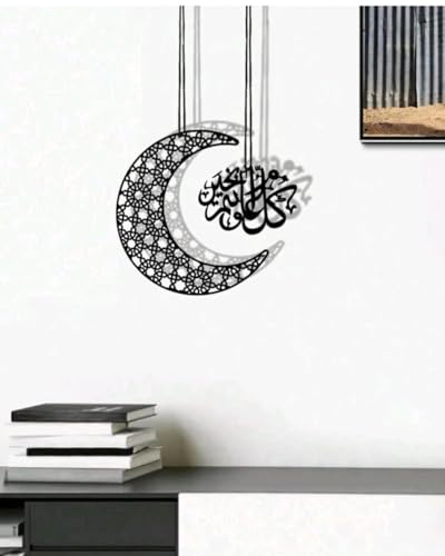 Generic - لوحة فنية جدارية إسلامية معلقة، هلال من الخشب الأسود مع خط عربي، ديكور منزلي ديني عصري