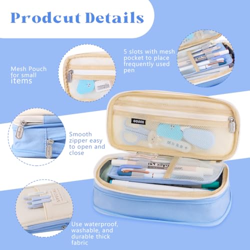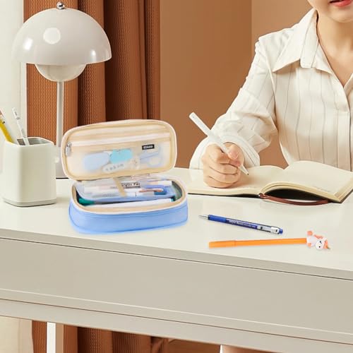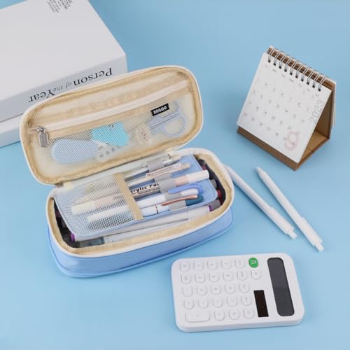 iSuperb - مقلمة متعددة جيوب بـ 3 سوست، شنطة أقلام بجيب شبكي مربع، منظم شنطة مستحضرات التجميل من اي سوبيرب