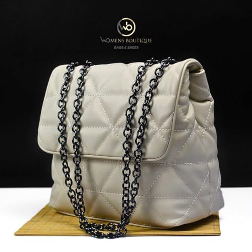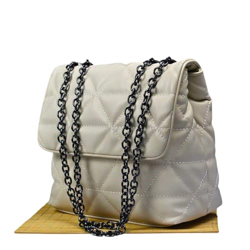 Generic - Italian Capotonic Leather Shoulder & Crossbody Bag, Beige, Medium Size 32x22cm, Double Metal Chain, Quilted Design