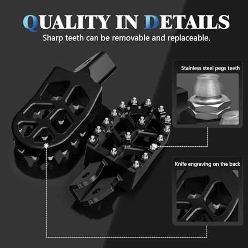 - PREMIUM MATERIAL - Constructed from premium 7075-T7 aluminum alloy, the surron foot pegs are both lightweight and robust, exhibiting excellent wear and corrosion resistance, ensuring a prolonged service life for sur ron foot pegs.