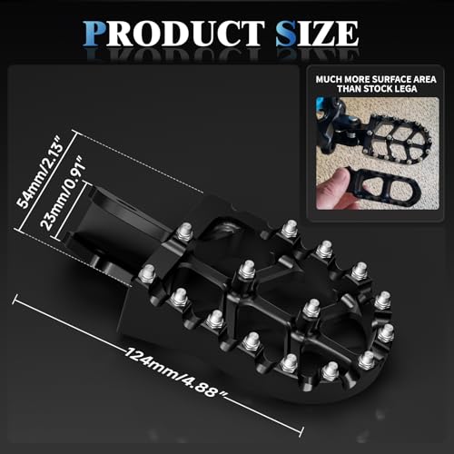 - WIDER PLATFORM - The platform of sur ron footpegs is larger than the stock surron pegs, accompanied by 17 effective anti-skid pegs, providing a more relaxed foot rest, and safer riding.