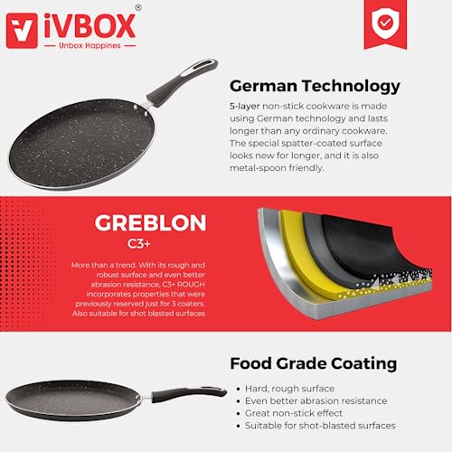 ivbox - ivbox Omega-Pro Granite Dosa Tawa 3mm-Thick Non Stick (Induction and Gas Stove Compatible), 280 mm, Aluminium, Black