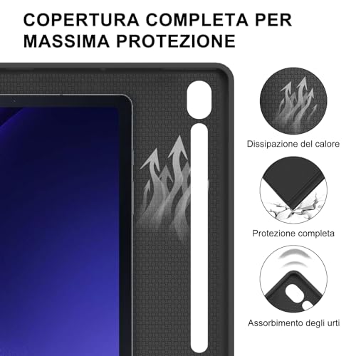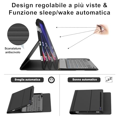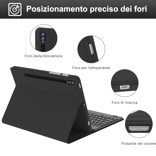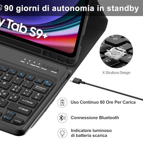 - جراب بلوحة مفاتيح متعدد الزوايا لجهاز سامسونج تاب S9 بلس: عند مشاهدة مقطع فيديو أو فيلم، يمكنك ضبط جراب جهاز سامسونج تاب S9 بلس على زاوية المشاهدة الأنسب لعينيك (120 درجة - 125 درجة - 130 درجة)، لتجربة مشاهدة مريحة ومميزة بالفعل. مصنوع من أزرار متينة من بلاستيك ايه بي اس وتصميم مستقر بمفاتيح مقصية، مع تخطيط إيطالي مألوف، سواء كنت تتصفح الإنترنت أو تعمل على إدخال البيانات، ستتمكن من زيادة كفاءتك بكل سهولة.