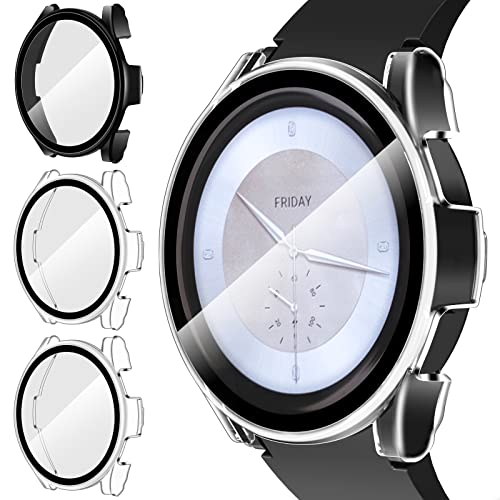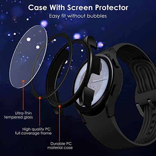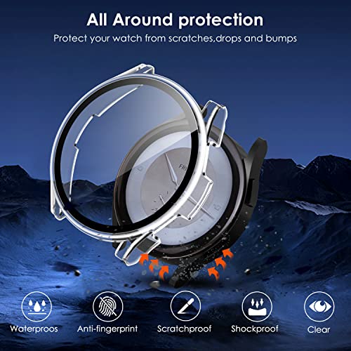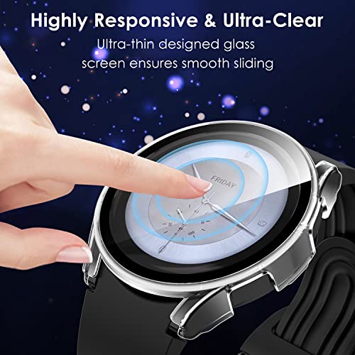 - [Full Protection] --- Made of very high quality PC material hard shell with built-in HD tempered glass screen protector, it provides full protection for the screen and curved edges of your smartwatch against scratches, drops and bumps. With the resistance of the glass against the fingertips, it fits perfectly and does not hinder touch sensitivity.
