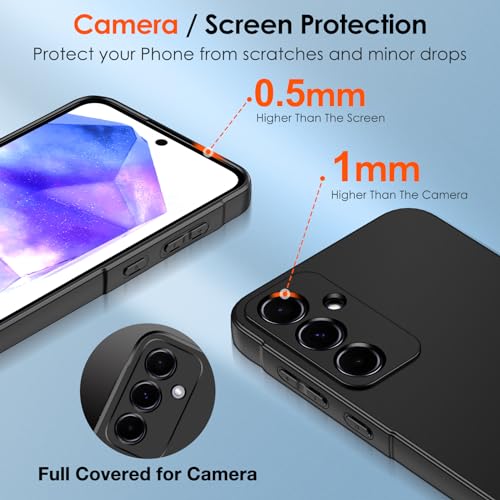 iVoler - جراب موبايل سيليكون ناعم رفيع جدًا بلون مطفي مع حماية للكاميرا، جراب حماية مقاوم للصدمات من بولي يوريثين مقاوم للحرارة مضاد للصدمات لموبايل سامسونج جالاكسي A55 شبكة الجيل الخامس 5G من ايفولر، أسود