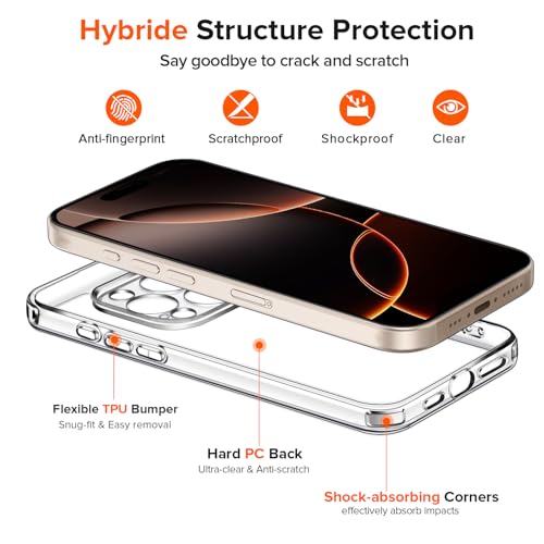 iVoler - جراب حماية شفاف ورفيع مضاد للصدمات ومقاوم للاصفرار بتصميم عسكري قياسي مقاوم للخدش لموبايل آيفون 16 برو ماكس من اي فولر