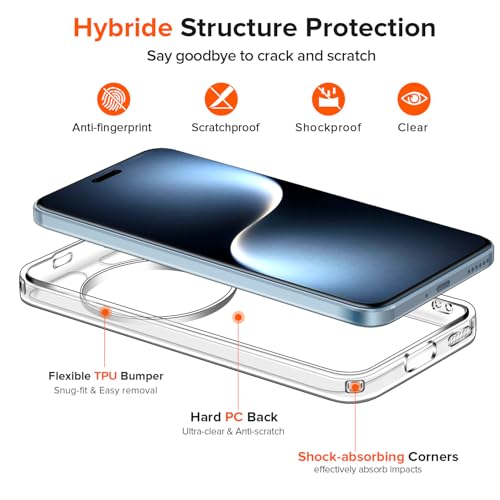 - [Crystal Clear & Non-Yellowed] --- The crystal clear PC back stays non-yellowing for longer. Use the ultra-clear TPU material from Germany to enjoy the original beauty of your phone. The nano-antioxidant layer effectively resists stains and sweat, does not easily become greasy and yellow over time, and perfectly shows the original color of your phone.
