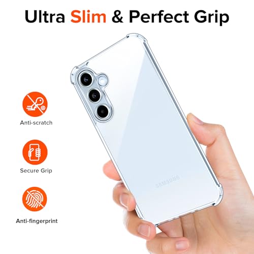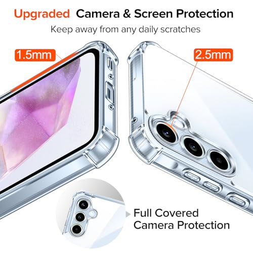 iVoler - iVoler Never Yellowing Clear Case for Samsung Galaxy A35 5G with Shockproof Protective Corners, 1 Mobile Phone Case with 3 Pieces Tempered Glass Protection, Military Protection, Transparent Protective