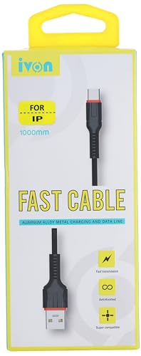 Ivon - Ivon kx2076 lightning usb fast cable charger and data line, 1m - black