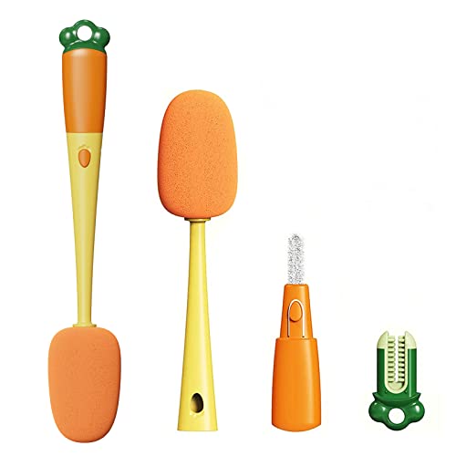 - [Triple cleaning mode]-- For the comprehensive and efficient cleaning of different stains, a brush includes sponge brush head, gap brush head, soft rubber brush head, and all bottle brushes of different sizes are perfectly arranged in the small carrots. Easy to store, super fun kitchen gadgets!