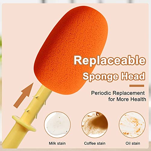 - [Replaceable sponge brush]--The 11-inch sponge long bottle cleaning brush has no scratches and reduces splashing. It is applicable to most milk bottles. It is recommended to replace the sponge head every 30-45 days to keep healthy.