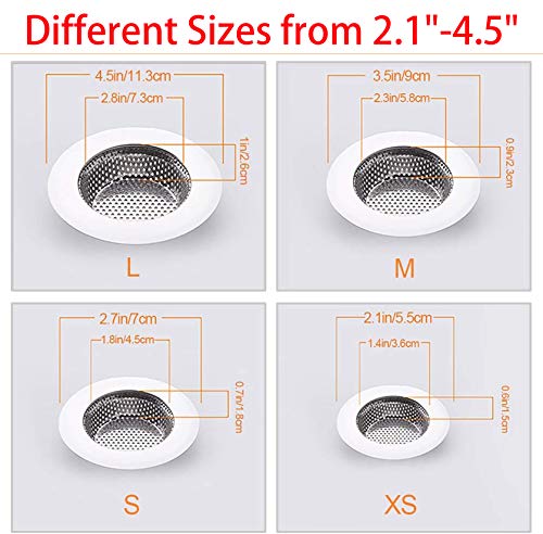 - 【4 DIFFERENT SIZES】4 (large, medium, small and small) hairpin shower drains are suitable for most sink drains and garbage disposal. Large: outer diameter: 4.45 inches; inner filter: 2.87 inches; depth: 1.46 inches; middle: outer diameter: 3.54 inches; inner filter: 2.28 inches; depth 1.18 inches; small: outer diameter: 2.76 inches; inner Filter: 1.77 inches; Depth: 0.98 inches; Plus small size: Outer diameter: 2.17 inches; Internal filter: 1.42 inches; Depth: 0.79 inches.
