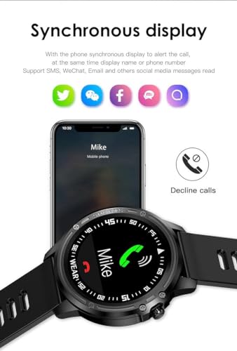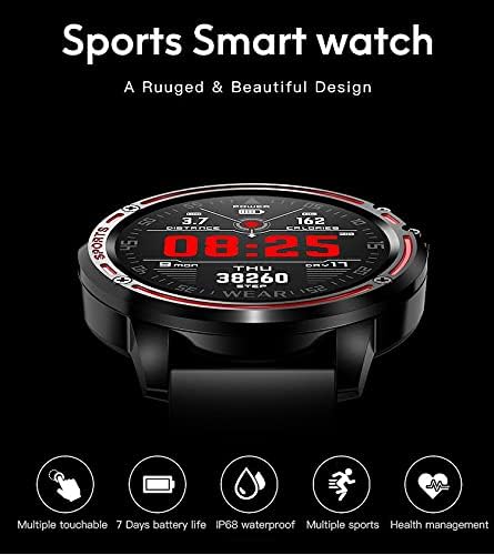 IXIU - ساعة ذكية L8 ريلوج انتيليجنت هومبر، ساعة ذكية مقاومة للماء بتصنيف IP68 لتتبع النشاط الرياضي الاحترافي مع معدل ضربات القلب ECG PPG، اسود