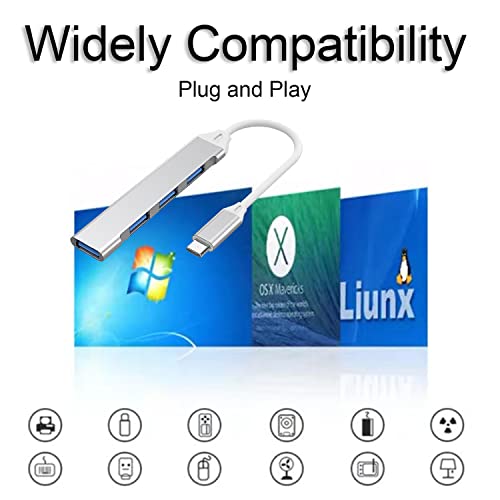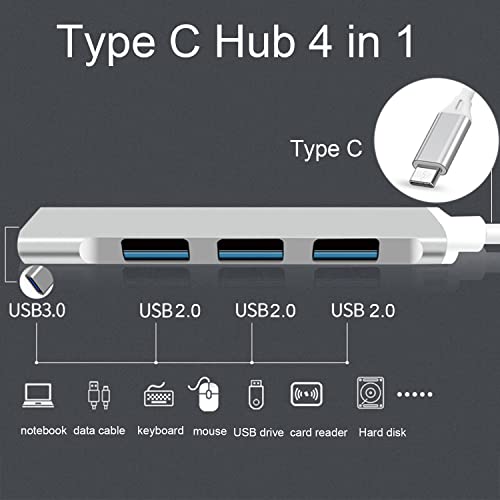 IZyufan - IZyufan USB C Hub, Ultra-Slim 4 Port Hubs USB 3.0/2.0 Hub with USB A to USB C Adapter Compatible with MacBook, Mac Pro, Mac Mini Surface Pro, XPS PC, Flash Drive and Mobile Hard Drive