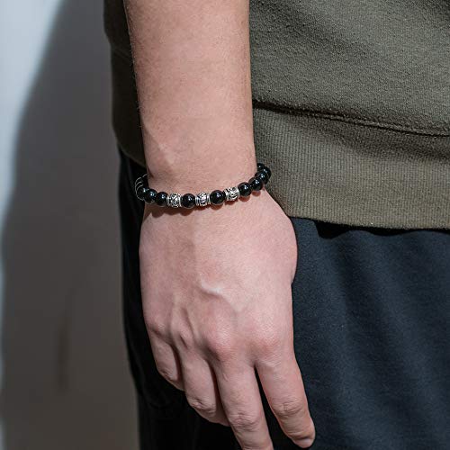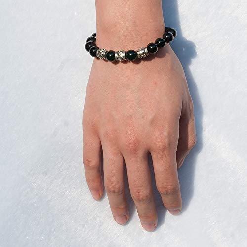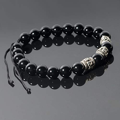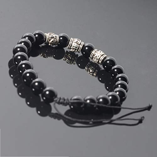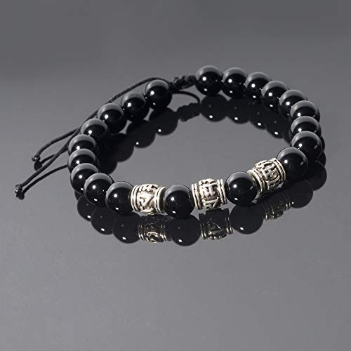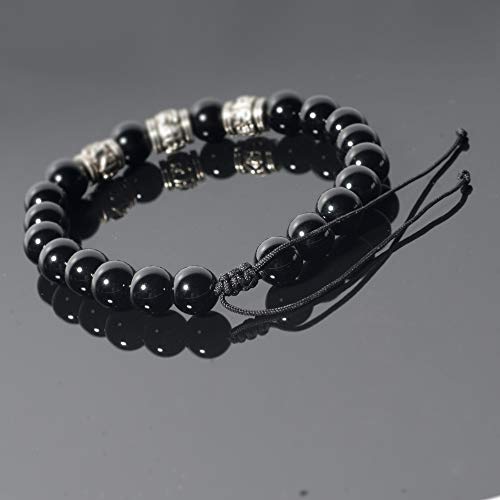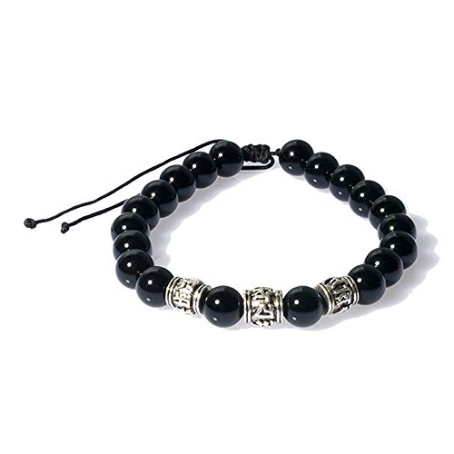 generic - J&C Handmade Bright Black Onyx Adjustable Braided Bracelets, Tibetan Silver OM Buddhism Beads Bracelets for Women/Men, Stone