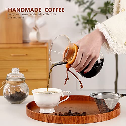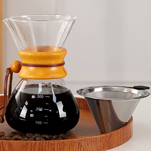 Jabykare - Pour Over Coffee Maker Glass Coffee Pot Manual Drip Coffee Brewer with coffee Filter for Home, Travel (400 ml, Brown)