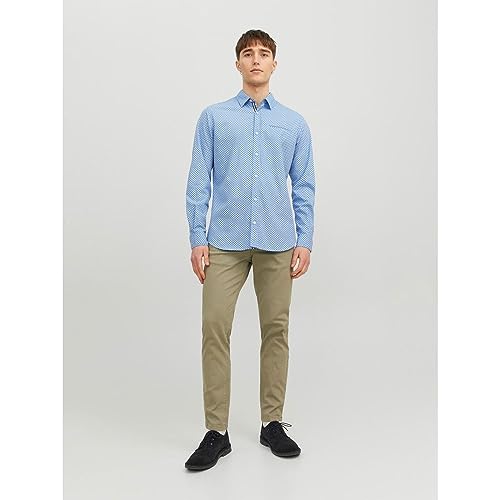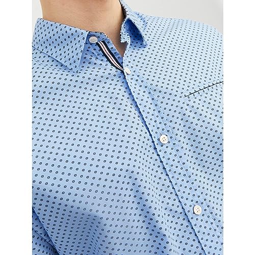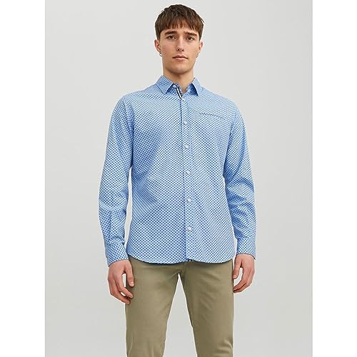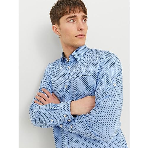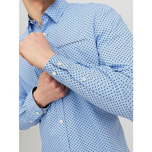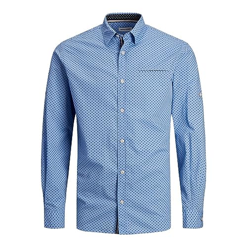 JACK & JONES - قميص جيرمي بأكمام طويلة للرجال من جاك اند جونز، مقاس اكس لارج XL - لون أزرق كشمير