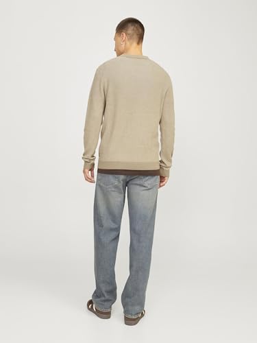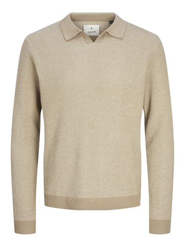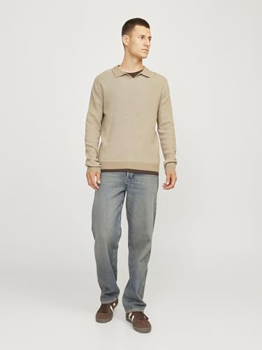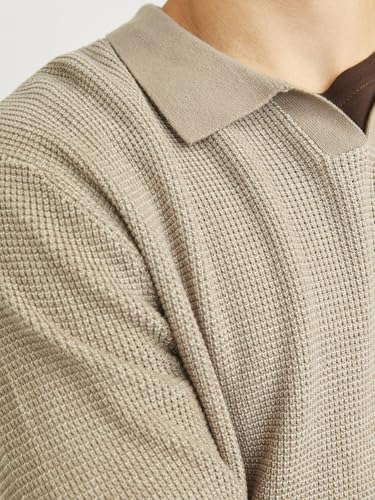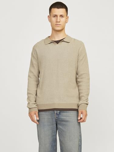 JACK & JONES - تيشرت بلاباني منسوج بأكمام طويلة وبفتحة رقبة منقسمة للرجال من جاك اند جونز، قطعة واحدة