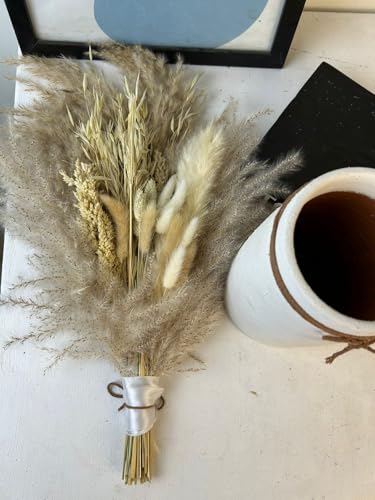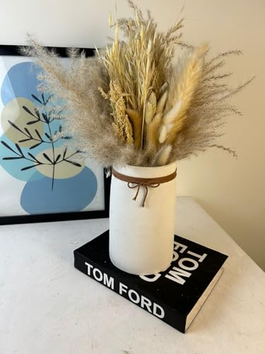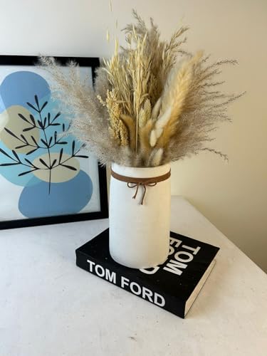 Jacky Studio - فازة بنمط ثلجي مع زهور مجففة من جاكي ستوديو، مقاس متوسط، أوف وايت