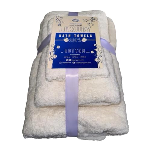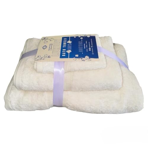 Generic - Jacquarddina Set of Bath Towels (3 Luxury Towels: 30X30cm & 50X100cm & 70X140cm) 100% Cotton (Off White). طقم فوط حمام جاكاردينا (3 فوط راقية) قطن خالص (اوف وايت)
