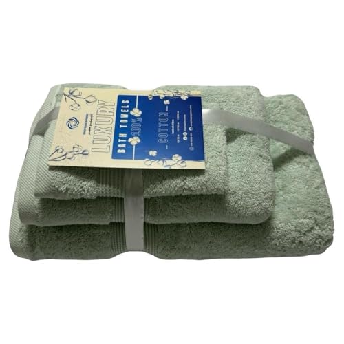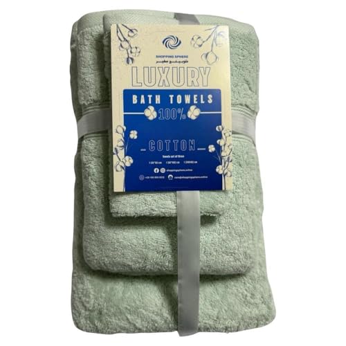 Generic - Jacquarddina Set of Bath Towels (3 Luxury Towels: Face Towel 30X30cm, Hand Towel 50X100cm & Bath Towel 70X140cm) 100% Cotton (Mint Green). طقم فوط حمام جاكاردينا (3 فوط راقية) قطن خالص (اخضر مينت)