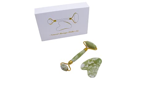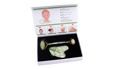Modo - Jade Roller and Gua sha Premium Quality Rejuvenating Natural Massage Roller Set for Face, Neck Back and Legs, Green