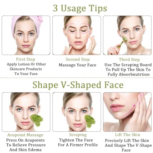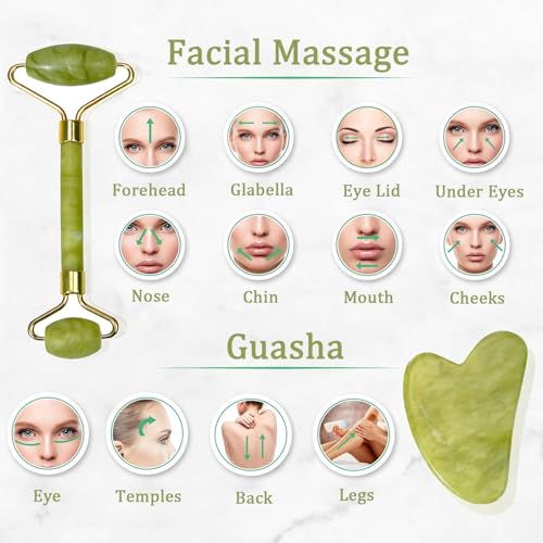 - 【Perfect Gift】 Get the best experience using our jade roller gua sha set 2 in 1. It comes with the Jade roller and Gua sha. It is an amazing personal care gift for your relatives, friends, parents, husband and wife. It is a perfect gift choice for birthday, valentine's day, Christmas Day, Mother's Day, Thanksgiving Day, etc.