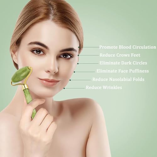 - 【Natural and Effective】This facial roller is made from authentic jade stone.It helps to muscle tension relief, reduce facial puffiness and help your skin look fresh; firm your skin and make it look dewy and lifted.This promotes circulation, tightens skin, and combats puffiness. The cool and invigorating sensation of jade illuminates the skin with a healthy glow, making it appear younger and more radiant.
