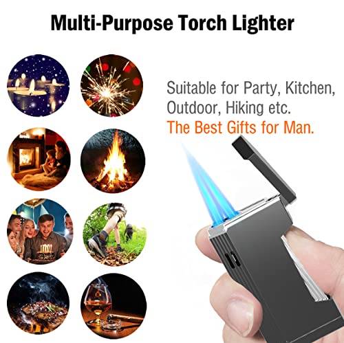Jaerdhs - Torch Butane Lighter - Windproof, Adjustable Strong Flame for Fireplace, Fireworks, Grill, Camping, BBQ (Without Gas) (Black)