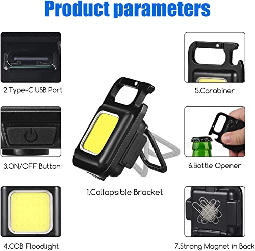 Jahy2Tech - Jahy2Tech 800 Lumens Mini COB Flashlights LED Bright Rechargeable Keychain Flashlight with Bottle Opener and Magnet Base for Camping Fishing Walking (Assorted Colors)