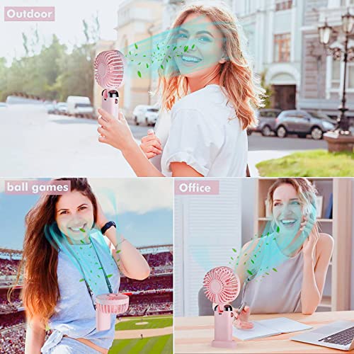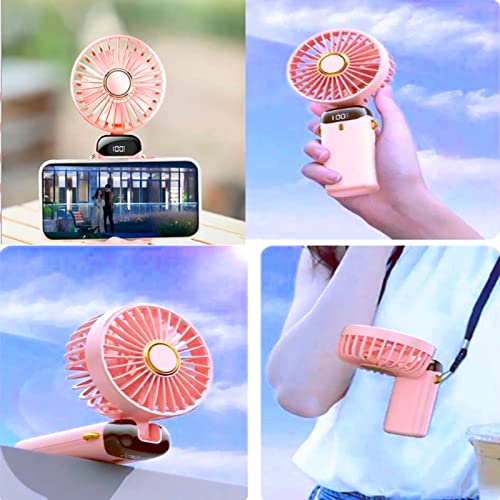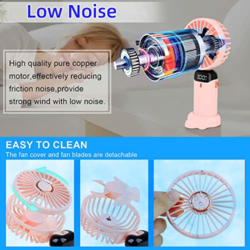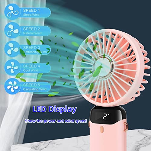 Jakeloo - Portable Fan, Hand Held Fan Handheld Fan Rechargeable Portable Fan for Travel Personal Fan Handheld Foldable 5000mAh 5 Speeds for Travel/Camping/Outdoor/Office (Pink)